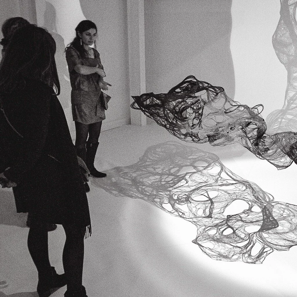 Elle développe une démarche artistique à partir d'un fil métallique et compose une matière à mi-chemin entre sculpture et broderie, créant ainsi un trait d'union entre la couture et le dessin dans l'espace.